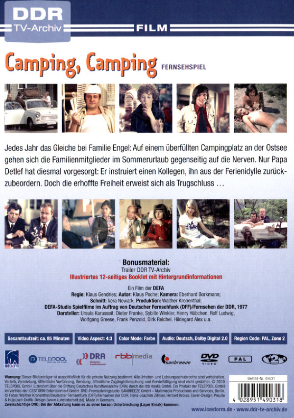 Camping Camping - DDR TV-Archiv Standard Version Ursula Karusseit Darsteller Henry Hübchen Darsteller Klaus Gerdries Regisseur 0 mehr Alterseinstufung. CAMPING - CAMPING 1977 Ein Film des Fernsehens der DDR von Klaus Poche. MDR-Fernsehen im Livestream sehen.
